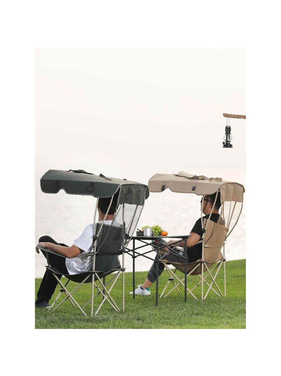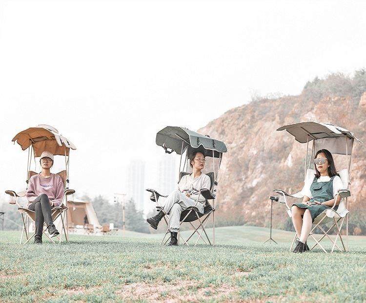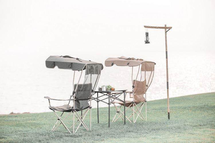 強い日差しから守る大型日除け屋根が付いたアウトドアチェアです。