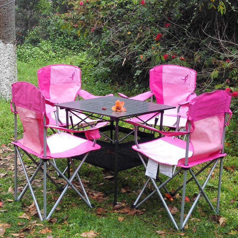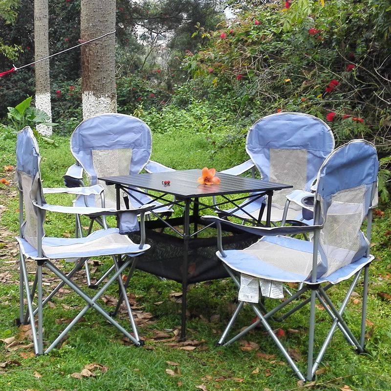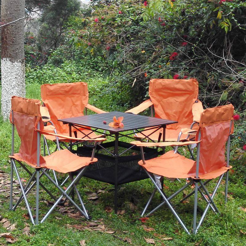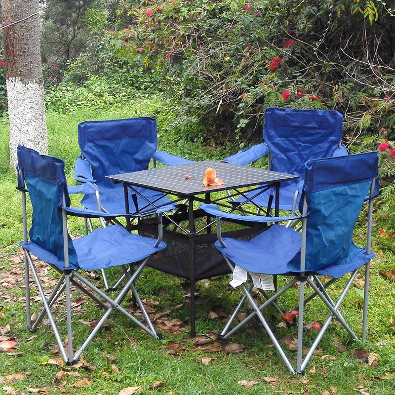家族や友人との屋外活動に最適な折りたたみ式のアウトドアチェア四脚とテーブルのセットです。