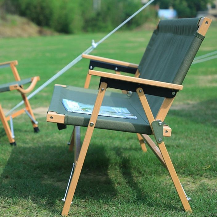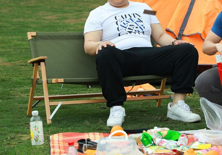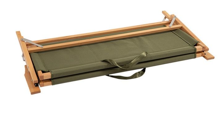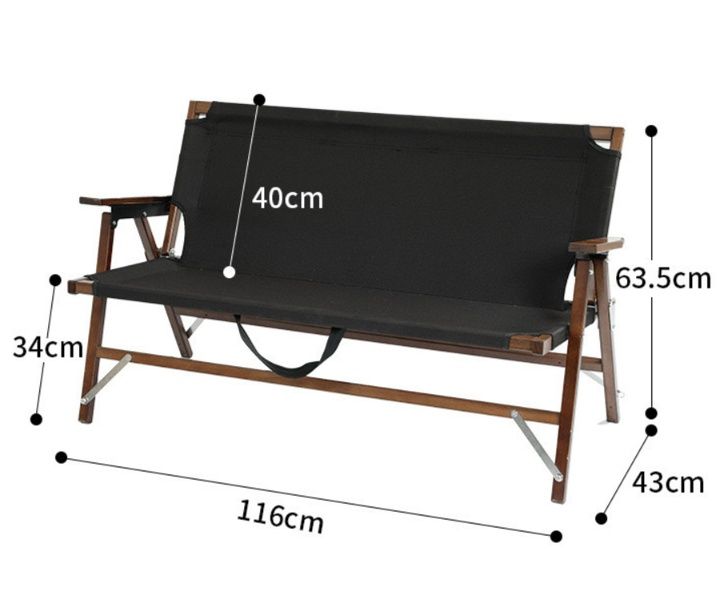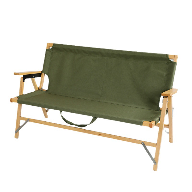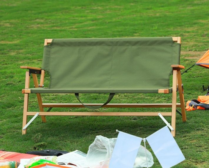 天然木フレームと丈夫な布地を組み合わせた2人掛けのアウトドアチェアです。