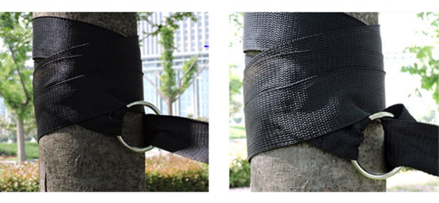 収納袋と固定用の縄が付属しており、木と木の間に簡単に設置できます。