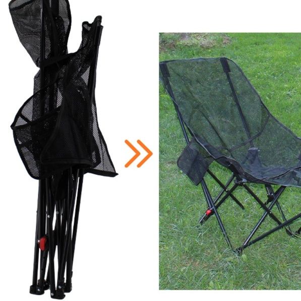快適な休息を追求したアウトドアチェアです。 リクライニング機能と一体型の足置きで全身をゆったりと預けられる設計になっています。 通気性に優れたメッシュ素材を採用し、長時間の使用でも蒸れにくく快適です。 折りたたみ式で持ち運びや収納も簡単、専用の収納袋付きで携帯性抜群です。 安定感のある頑丈な骨組みと滑り止め付き脚部で安全性も確保しています。 野営や釣り、庭でのくつろぎ時間に最適な一品です。