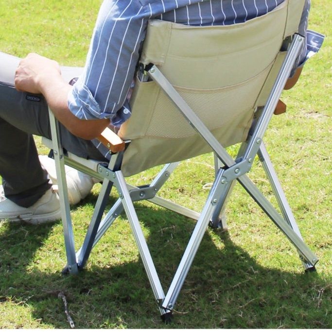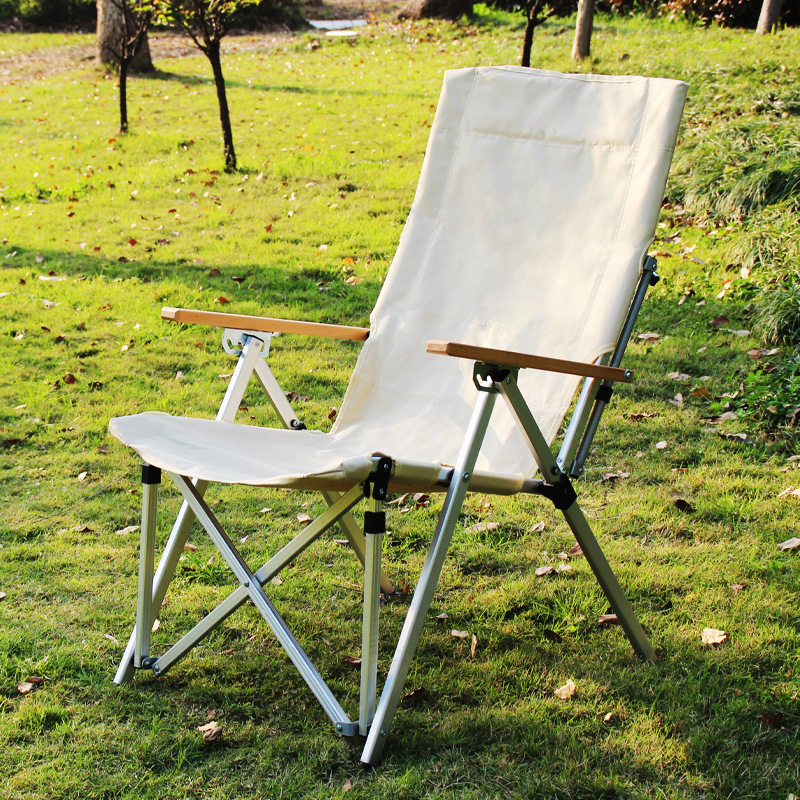 背もたれの角度を四段階に調節できるアウトドアチェアです。 折りたたみ式で持ち運びや収納が簡単にでき、キャンプや釣りなどの野外活動に最適です。 木製の肘掛けが付いており、ゆったりとくつろげる設計になっています。 耐荷重150キログラムで安定性も抜群です。 高めの背もたれで頭までしっかり支えられ、長時間座っても疲れにくい快適な座り心地を実現しました。