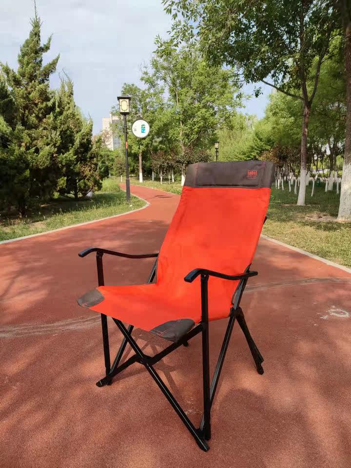 背もたれを好みの角度に調節できるリクライニング機能を搭載したアウトドアチェアです。 高めの背もたれが頭部までしっかりと支え、長時間座っても疲れにくい設計になっています。 折りたたみ式で持ち運びや収納が便利なため、キャンプや釣り、野外フェスなど様々な場面で活躍します。 丈夫な金属フレームと耐久性のある生地を使用しており、安定した座り心地を実現しました。